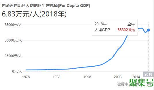 来看一下内蒙古自治区的人均GDP,6.8万RMB,接近一万美元,在我国属于中上游省份。