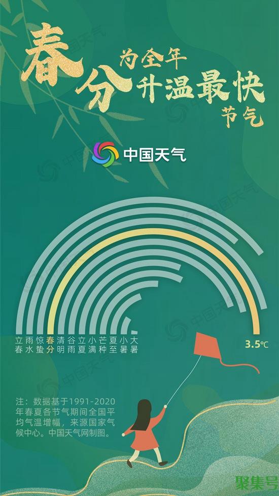 从近30年节气大数据来看,在春夏季的12个节气期间,我国大部地区都处于升温状态,其中春分节气升温最为明显,平均气温升幅可达3.5℃,是全年升温最快的节气。