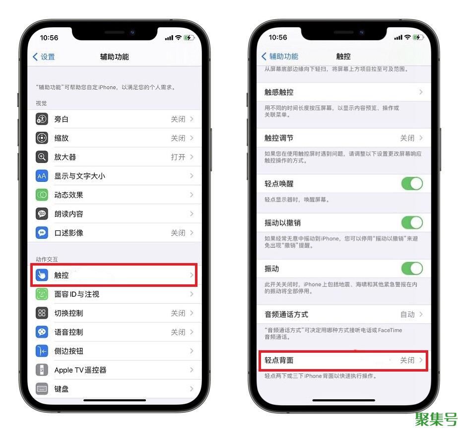 苹果手机还有一种更加高级的截屏方式,如果你升级到了iOS14,打开「设置」-「辅助功能」-「触控」,滑动到屏幕最底部,点击「轻点背面」。