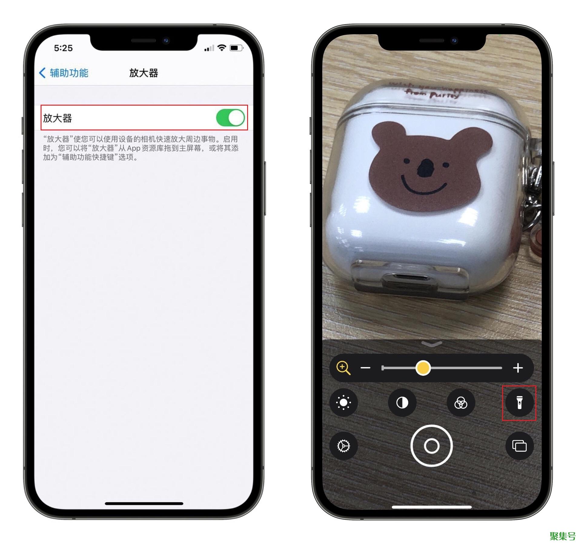 打开苹果手机的「设置」-「辅助功能」,开启放大镜功能,连续按3次锁屏键,就会进入到放大镜模式,拖动下方的进度条进行放大,还能打开手电筒,特别适合暗环境下找东西,或者观察细节。