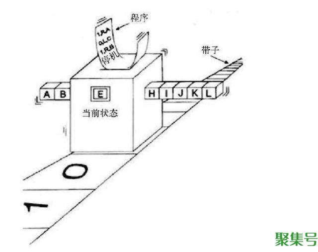 接下来上场的是艾伦·图灵(Alan Turing)。在我们的故事中,图灵的贡献出现在1936年,当时他第一次描述了我们现在称之为“图灵机(Turing machine)”的东西。图灵构思了一台可以处理复杂数学问题的假想机器。该机器由一条狭长的方格纸带组成,理论上它是无限长的。在纸带上,总是有一个活动单元格,在该单元格上方悬停着一个读写头。根据收到的指令或运行的程序,读写头可以在纸带上读写和移动。