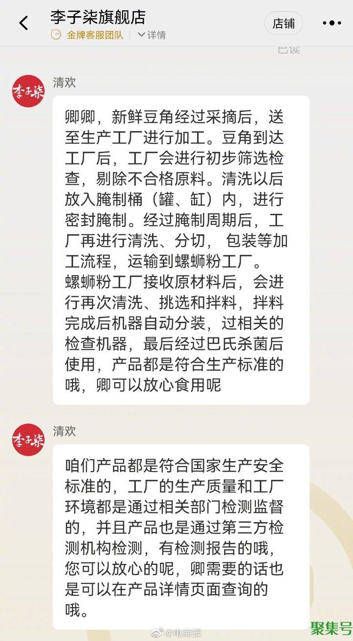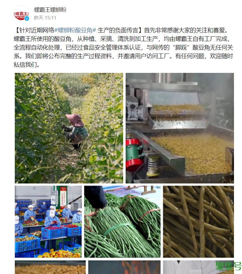 此外,多家螺蛳粉企业回应称螺蛳粉用酸豆角系工厂全流程自动化处理,已经过食品安全管理体系认证。