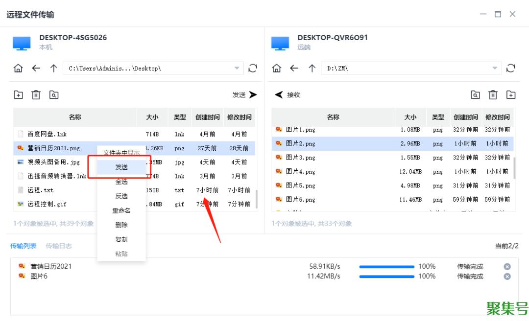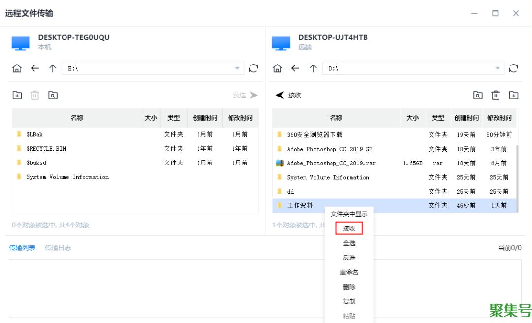 3.传输文件也很简单,从公司电脑上找到要传输的文件,右键点击“接收”,即可将文件传输到家里电脑上,很方便!
