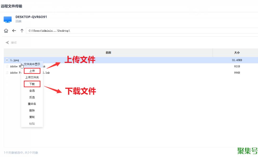 7.文件传输界面略有不同,「上传」和「下载」都在右键弹窗下,操作起来也很方便。