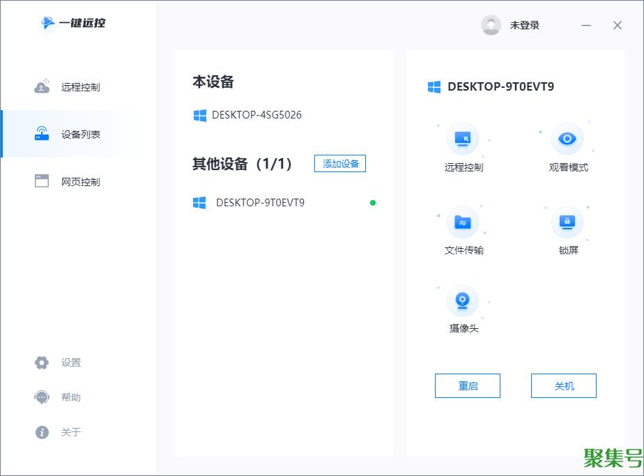 6.如果家里的电脑没有装一键远控,也可以通过网页端远程来传输文档。让同事帮忙打开公司电脑,将设备码发送你,粘贴到网页端,异地设备就能一键联动。