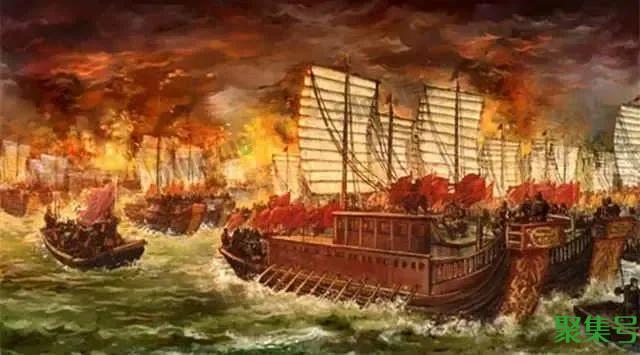 公元208年,曹操率大军攻打吴国,吴蜀联合抗曹。因魏军不善水战,孔明、周瑜决定火攻。庞统假意投奔曹操,提议魏军船只用铁索连在一齐抵御风浪;周瑜假打黄盖,后者假装降魏;孔明推测出东风将至。黄盖带数十条船降魏,船里装满柴草。快到魏军时,黄盖点燃柴草,火借风势向魏军烧去。魏军不熟水性船又连在了一齐,死伤无数。魏军逃跑。