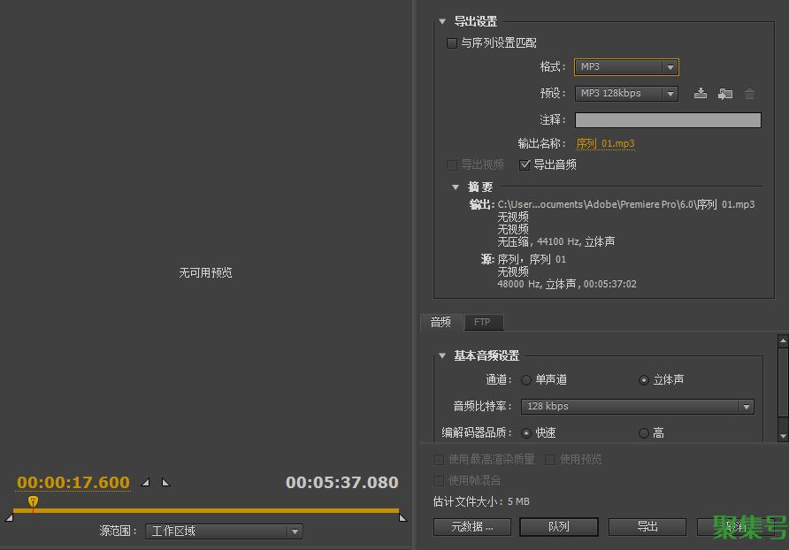 最后导出的时候,设置为MP3就可以了。