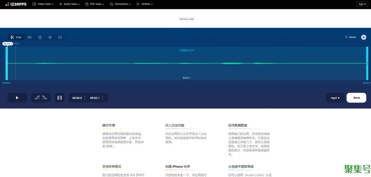 这也是一款在线的音频剪辑工具,推荐使用Chrome谷歌浏览器进行打开和操作。