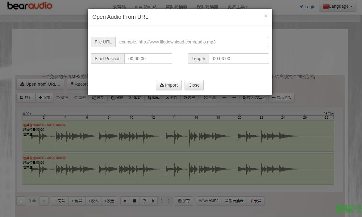 同样是一款网页版的音频在线编辑器,不过这个网站虽然可以支持中文,但是界面还没有完全汉化,使用的时候可以配合浏览器翻译插件。
