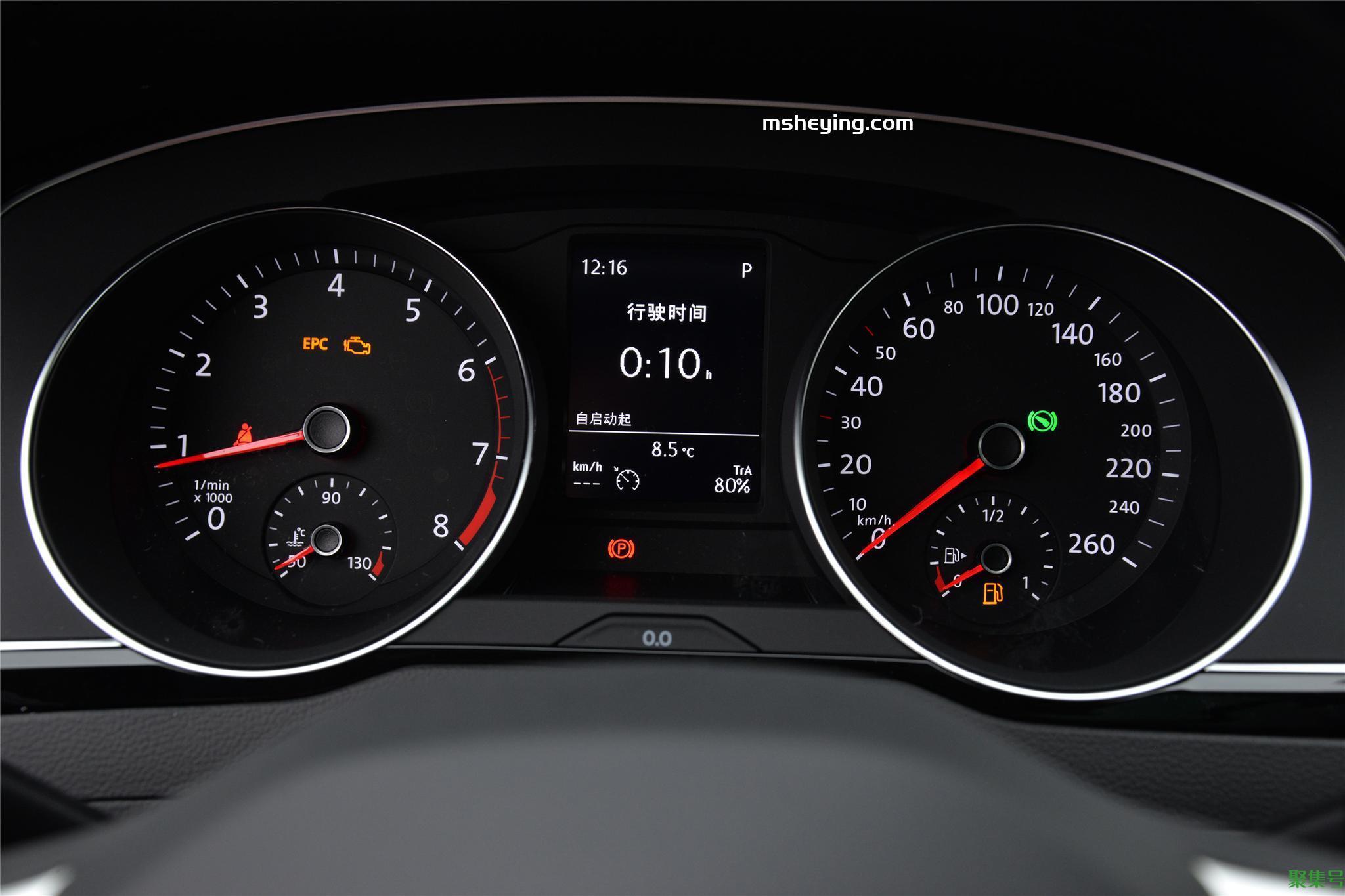 迈腾除方向盘为最新款之外,其余设计已经运用了多年,只有贯穿中控台的出风口有些创意感,全液晶仪表盘需要选装,仍旧是双炮筒的样式。
