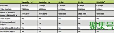 目前,可以输出4K分辨率的接口只有HDMI和DisplayPort,其中HDMI必须使用支持HDMI 1.4a或更高标准的产品,可以输出的4K分辨率规格最高为4096*2160 & 24 Hz或者是3840*2160 & 30Hz;DisplayPort则需要支持到DP 1.2标准,不过其最高可以输出刷新率为60Hz的4096*2160以及3840*2160分辨率。