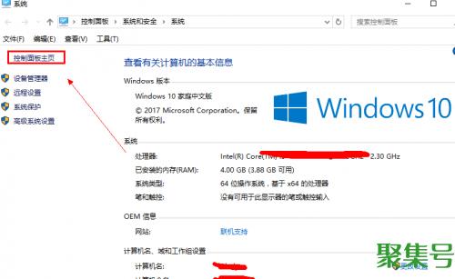 2.在电脑属性界面点击控制面板主页,如下图所示