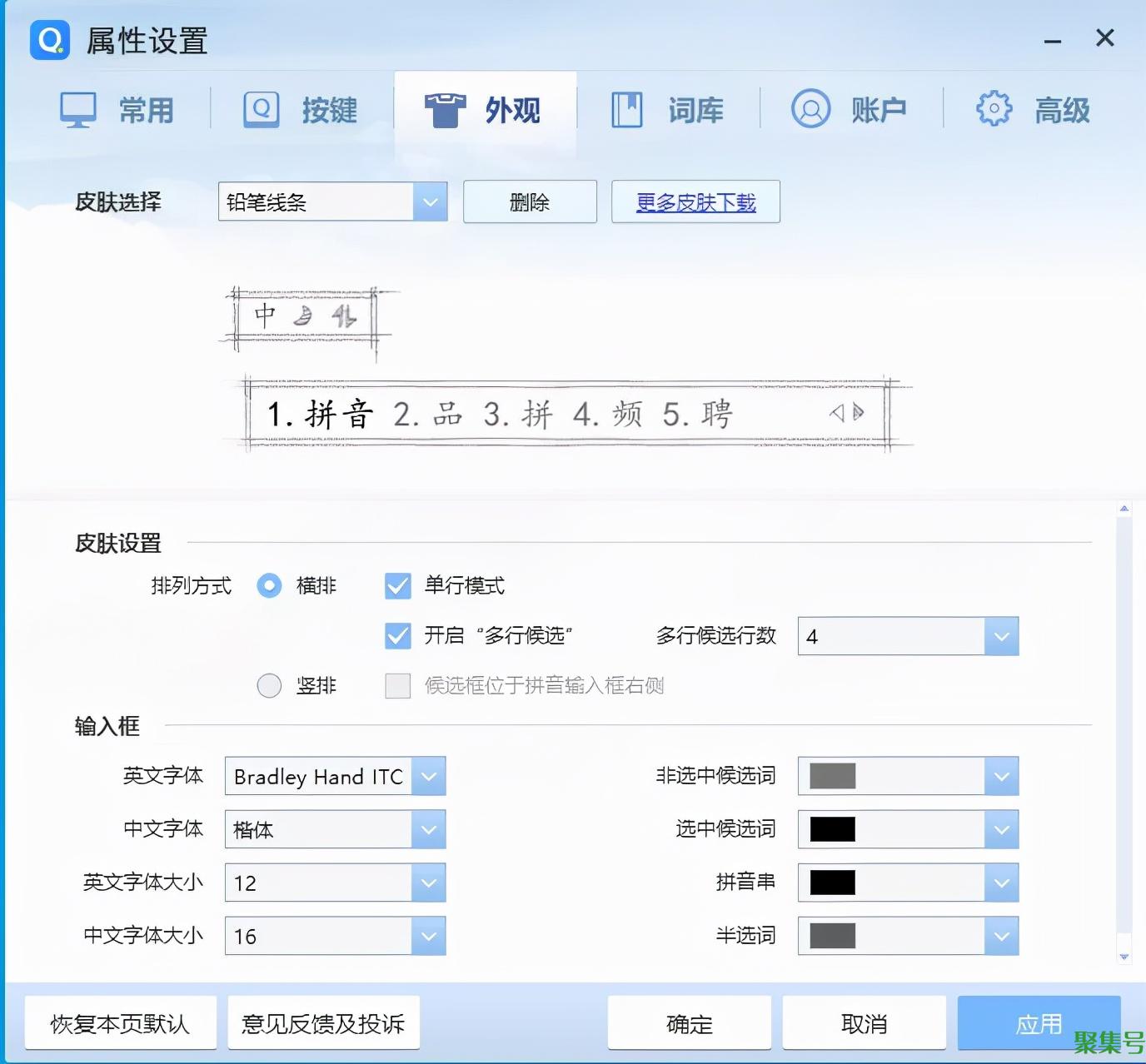 之后则是搜狗输入法的界面设置,自定义程度非常高,可以个性化的皮肤有很多。