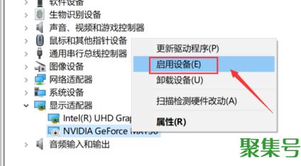 4、进入显示适配器,右键单击N卡,选择启动设备,如下图所示