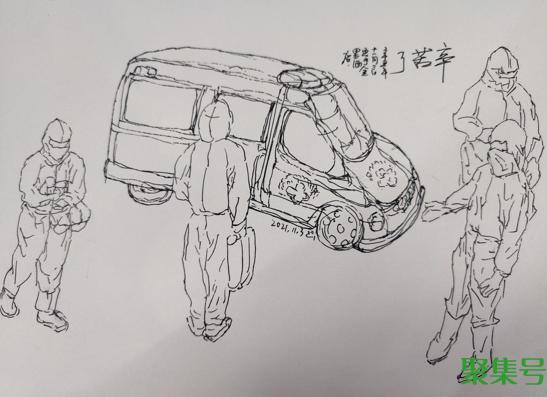 11月3日起,54岁的秦树林来到隔离酒店。工作人员穿着防护服工作的样子,他看在眼里;工作人员的热情服务和细心照料,他记在心里。秦树林是一名美术老师,于是利用自己的专业特长,用一组速写画记录着工作人员的日常工作。