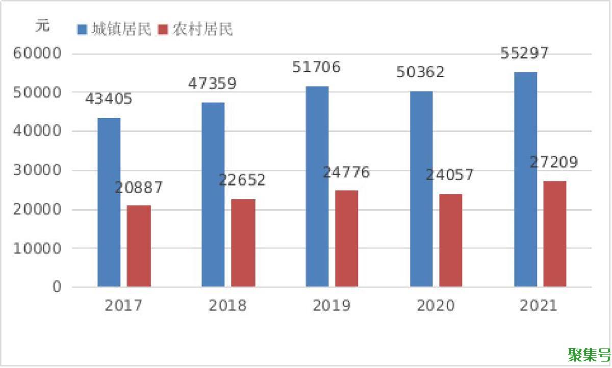 按常住地分,武汉市城镇居民人均可支配收入55297元,比上年增长9.8%;农村居民人均可支配收入27209元,增长13.1%。全年城镇居民人均消费支出36684元,比上年增长17.9%;农村居民人均消费支出21558元,增长18.1%。