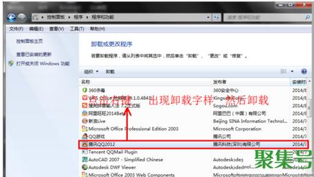 这可能是QQ某些程序有残留物,重新加载是。首先卸载,安装。该方法如图所示: