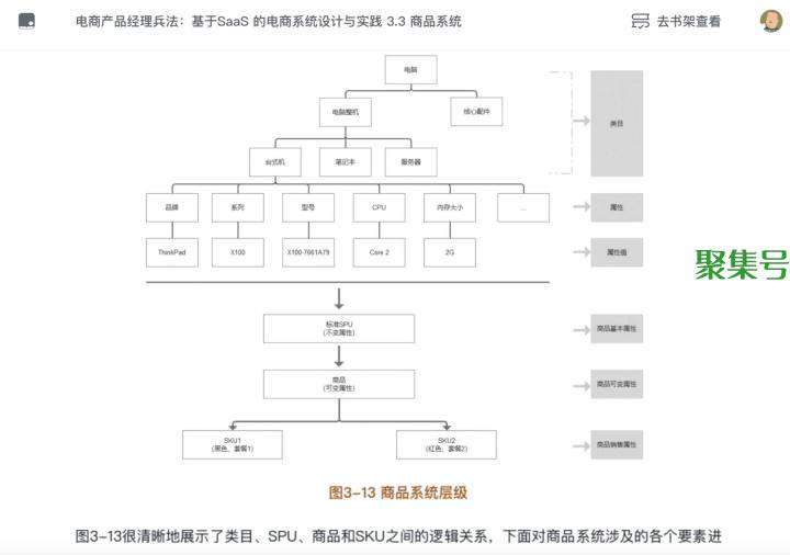 关于SPU和SKU的基础概念的了解,建议大家还是看看一些关于电商的书籍介绍,在此我就不做过多的整理,直接从《电商产品经理兵法:基于SaaS的电商系统设计与实践》此书中搬运一些基础概念过来。