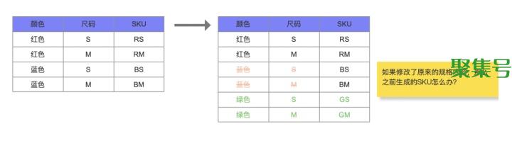 如果SKU编码BS和BM是在库的、有库存的,那么直接删除这两个SKU显然是不合理的,但是由于电商的管理应该大多数是基于SPU层面,所以如果修改了规格属性(电商也叫销售属性),那么被更改了的那个应该不能再出现了,类似于此款停产或者不再售卖了。