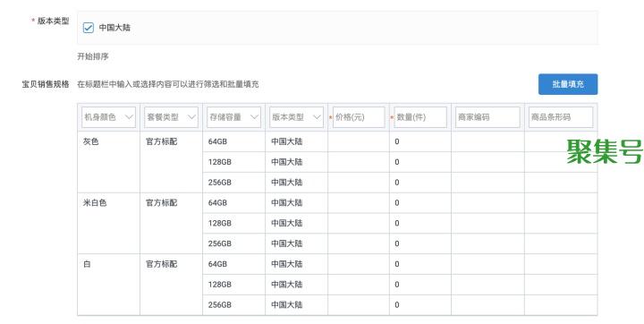 下图是淘宝的千牛后台,发布商品的时候先选择对应的类目后,会给出对应的销售属性,而且是都必填,所以不存在中途增加和修改销售规格的情况出现。
