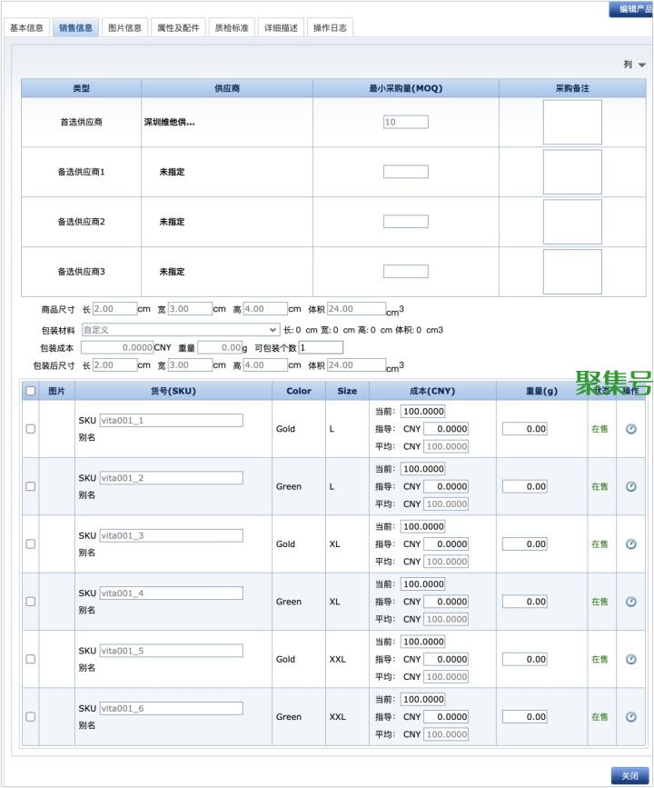 创建多规格产品(SKU)的时候,将供应商信息挂在SPU维度上,然后SKU继承这些信息,就避免了逐个SKU维护供应商的繁琐操作。