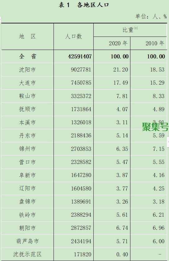 辽宁省第七次全国人口普查公报[1](第二号)——地区人口情况