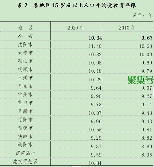 与2010年第六次全国人口普查相比,全省人口中,15岁及以上人口的平均受教育年限由9.67年提高至10.34年。