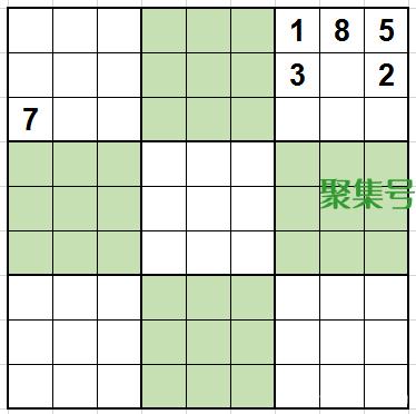 从上面这个例子可以看到,当只有一行或者一列会合于某一宫时,这一宫的相同的数字也有可能可以填出。