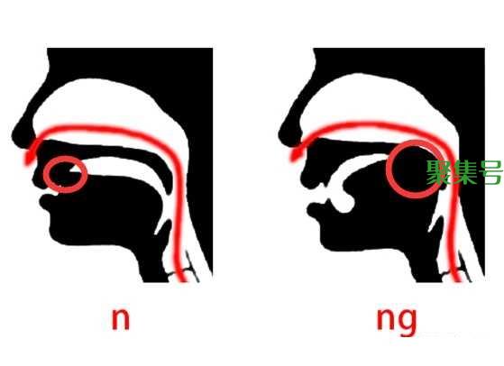 ng是舌向后缩,舌根抬高、软腭下降,舌根抵住软腭阻碍气流,也称“舌根音”。