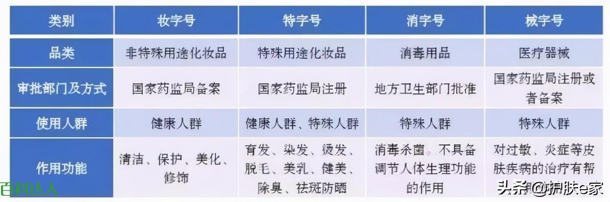 最后,我们用一张表总结一下“妆字号”“特字号”“消字号”“械字号”的区别。