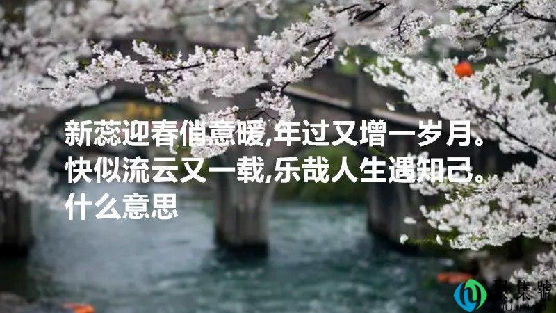 新蕊迎春俏意暖,年过又增一岁月。快似流云又一载,乐哉人生遇知己。这是一首藏头诗,它的意思就是绽放的花蕊迎接着春天的到来,到处都充满着春天的那种温暖的气息。年过了之后又增长了一岁,时间过得飞快,不知不觉间又过去了一年,人生快乐的事情就是遇到知己。其实如果仔细阅读这首诗会发现这是一首藏头诗,他所要表达的意思就是新年快乐,这是在新年的时候很多人喜欢使用的一首诗。这首诗主要就是送祝福,希望在来年能够生活如意,能够遇上自己的人生知己。每到过年的时候,朋友之间都会喜欢发一些祝福之类的诗句来表达对彼此的美好祝福。