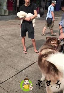 原来是因为这样,这位男子正和往日一样,带着自家阿拉散步。本以为一切会和平时一样普普通通,可是有位路人抱着一只可爱的小型犬迎面走来。男子一下子被那小小的宠物狗给萌坏了。路人也很是善解人意,大方地将小狗狗塞进男子怀里,让他抱一会儿。