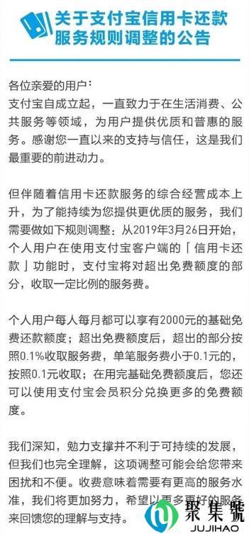 3月26日起,用户通过支付宝给信用卡还款将收费。