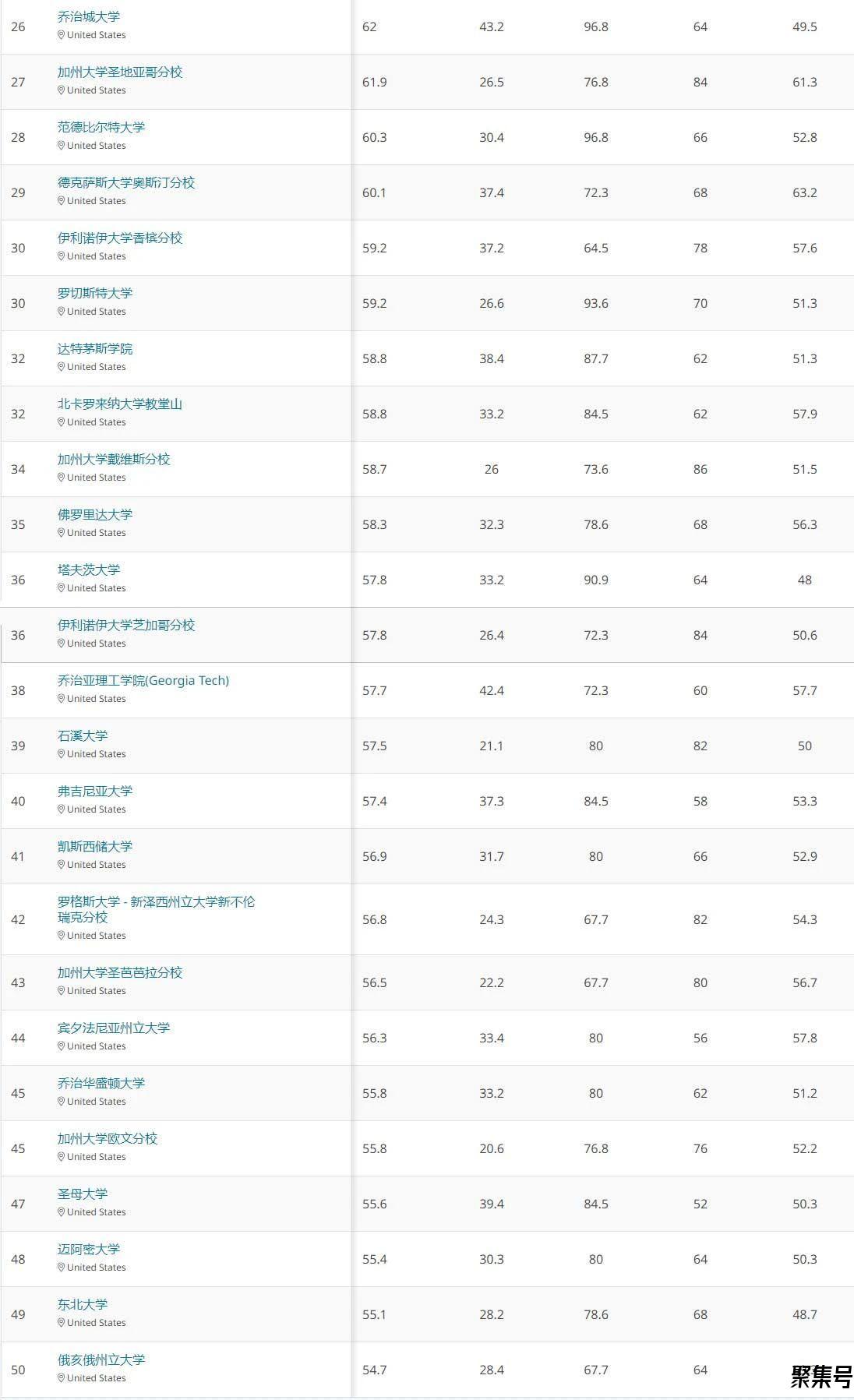 QS自2020年起发布美国大学排名。与去年的榜单相比,加州大学圣芭芭拉分校从第73名升至第43名;伊利诺伊大学芝加哥分校从第43名提高到第36名。