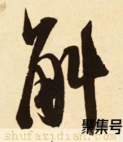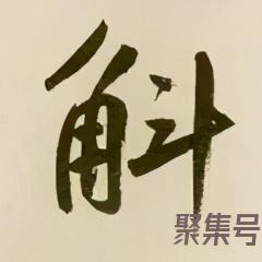 左部“角”旁斜势抗肩,不要写宽。上面首撇落笔向右下,然后转锋向左下方撇出,撇身稍直,注意角度;横撇的横画一带而过,接着提笔向上顿笔写撇,注意走向与首撇不同。下面“用”勿宽:左竖注意起笔位置,向下稍左斜,中间稍轻,垂露收笔;横折钩虚接起笔,横画大抗肩,略呈俯势,与右撇相接而过,然后向右下轻顿、稍内擫写竖,竖身稍重,略弯,劲挺有力,收笔起小钩;里面两横稍靠上,虚接起笔,大抗肩,勿长;最后竖笔实接起笔,略左斜,注意长度。