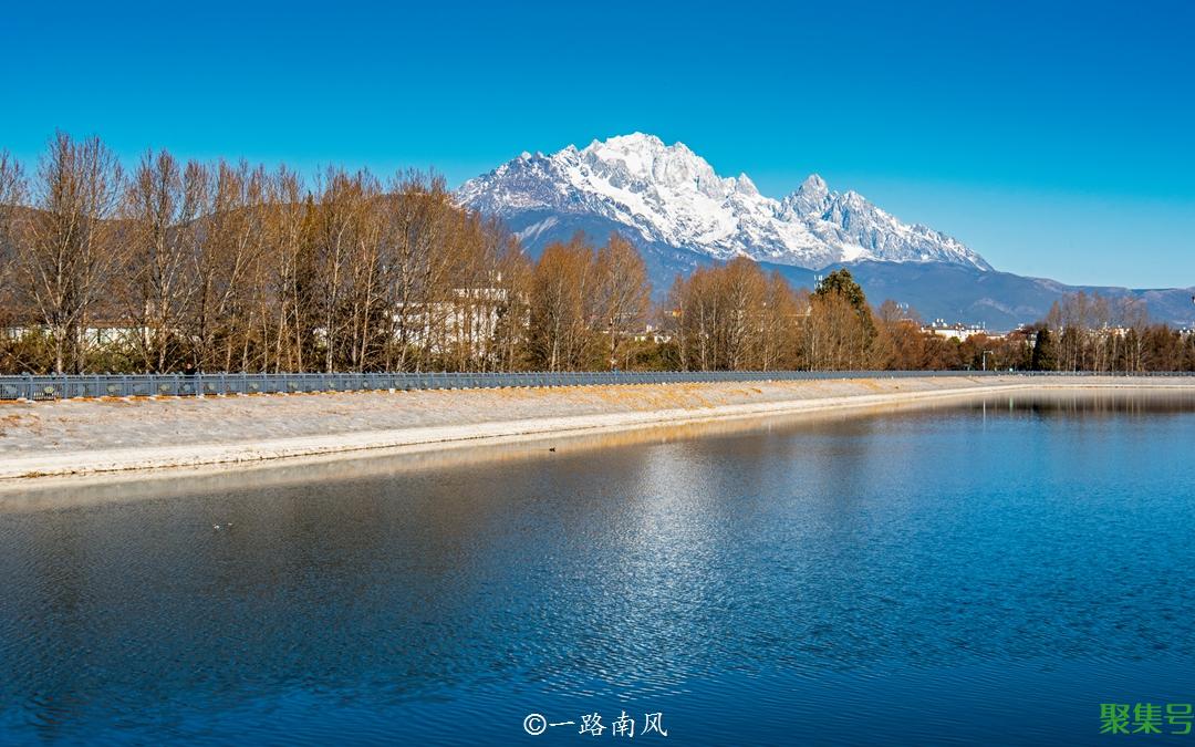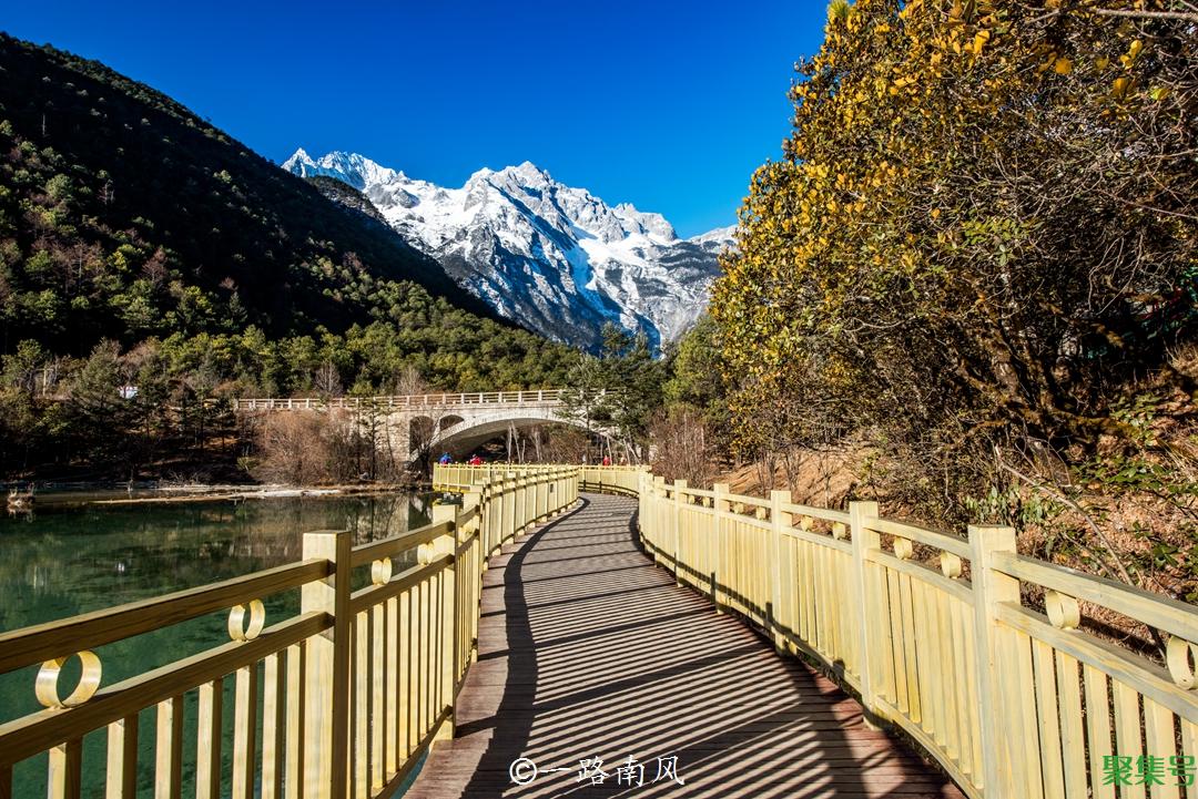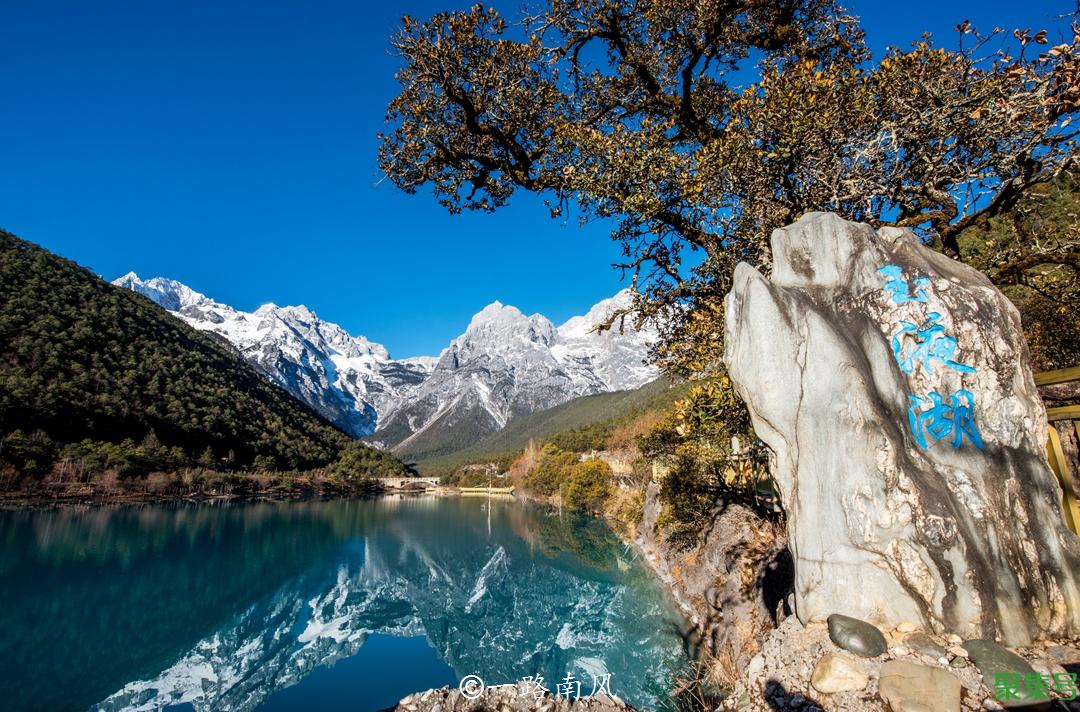 除非极端低温天气,否则玉龙雪山的下半山并不会下雪,即使在相对寒冷的冬季,蓝月谷依然可以看到绿色,这里最美的景色是欣赏雪山的倒影和蓝色的湖水。