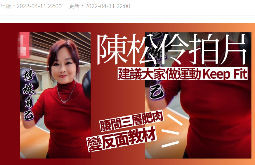 港媒也有关注了这条视频,但不觉得陈松伶瘦了,反而觉得她身材发福了,还吐槽她做运动的时候,腰间赘肉明显,嘲笑她完美示范当上反面教材。