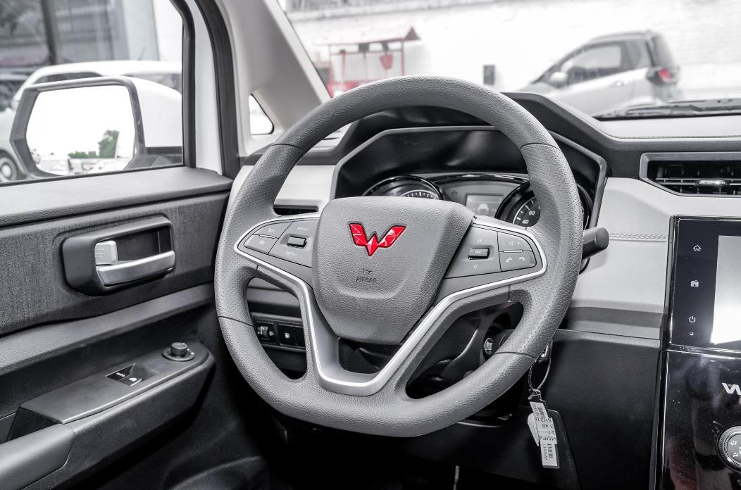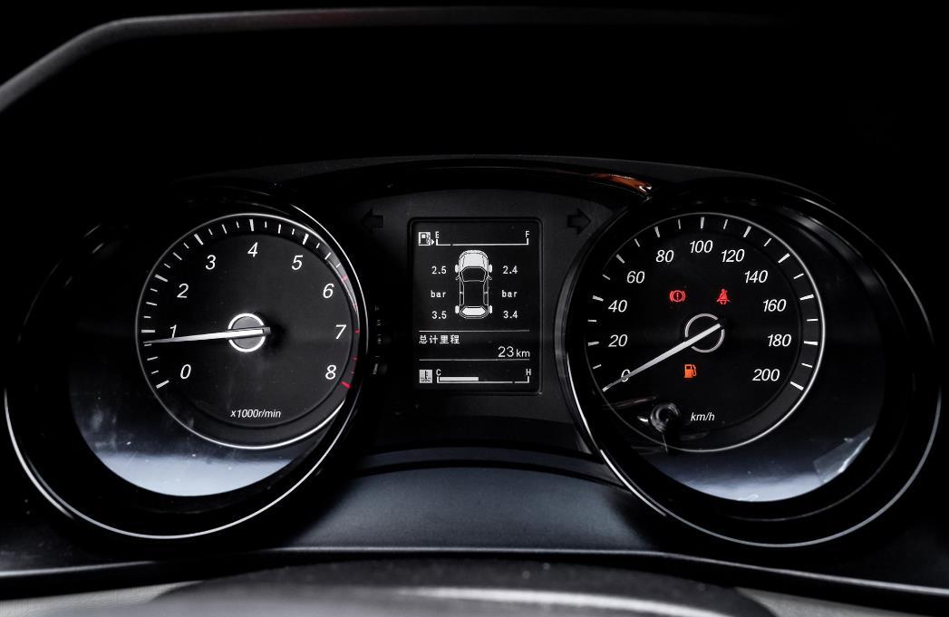 驾驶位这边,配备了塑料材质的方向盘,手感没有皮质方向盘细腻,但防滑效果还可以,两侧有多功能按键,用手比较顺手。透过方向盘能看到传统样式的仪表盘,最左边是发动机转速表,中间是行车电脑显示屏,最右边是时速表,表盘的款式没有科技感,但白色数字看着清晰,方便驾驶员观看。
