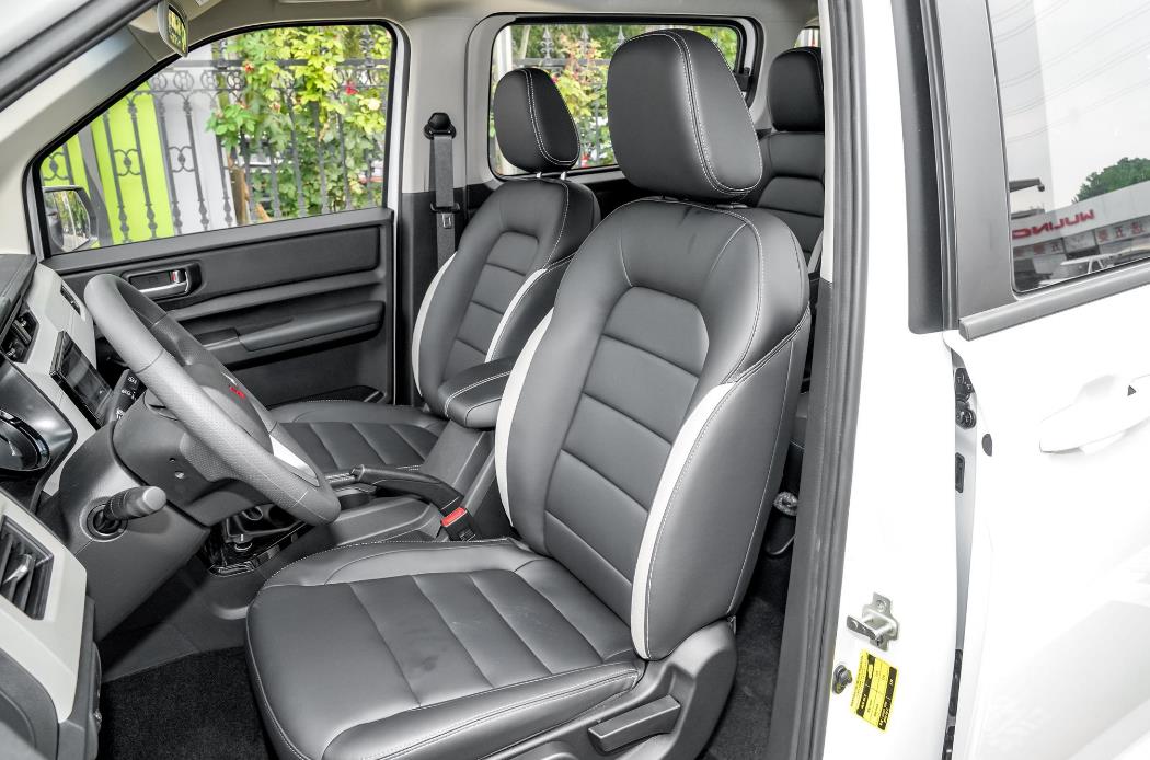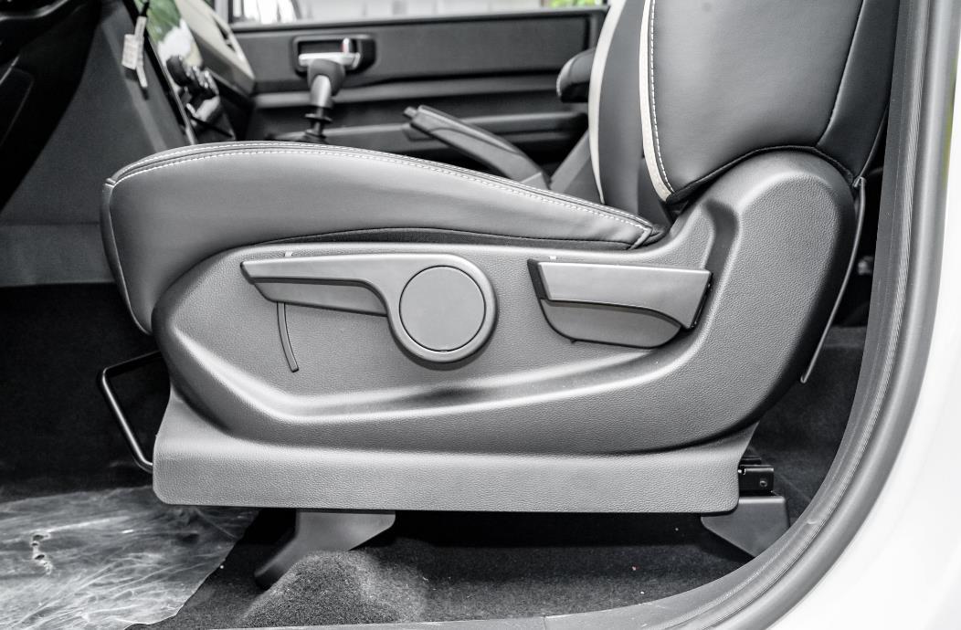 车内座椅采用了黑色仿皮面料包裹,坐上去的感觉略微偏软,前排座椅配置不多,仅主驾驶单独配备了座椅高低调节,主副驾驶位标配了座椅前后和靠背角度调节。