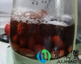 3、用清水煮一煮,先用大火煮开,水会酿成红色。