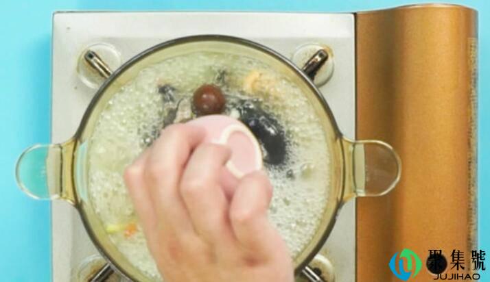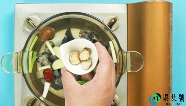 用料:土鸡1只、姜5克、葱5克、桂圆2个、红枣2个、黄芪3克、白芍2克、党参3克、当归2克、枸杞5克、盐2克。