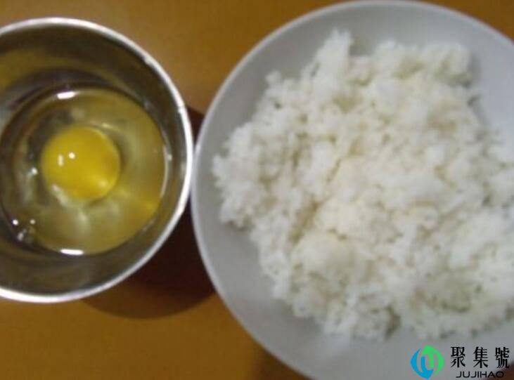2、一个鸡蛋打在碗里,煮熟的米饭1碗。
