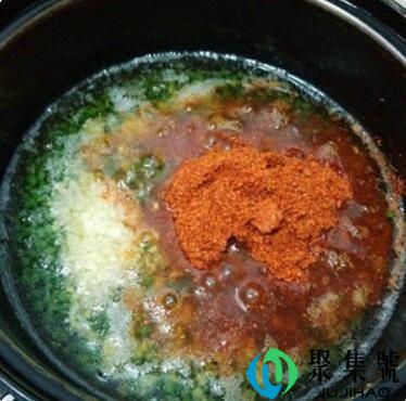 3、往木姜子碗里放入一些辣椒粉拌匀。