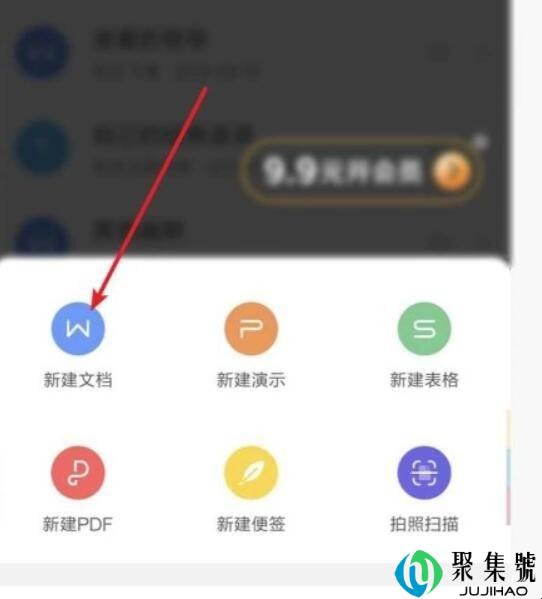 2、点击弹出选项卡中的新建文档按钮,创建一个空白文档。