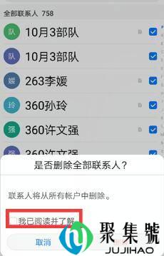 正文 若何快速删除通信录联络人 百科达人 V网站编辑 /2021-09-21 18:53:41 /226 阅读 0921 以华为P40、EMUI11为例。翻开手机界面,找到“联络人”选项,点击“更多”选项;弹出的列表中选择“整理联络人”选项;呈现的界面中,选择“批量删除”选项;呈现所有的联络人,单击“全选”按钮;全选后,单击“删除”按钮;会弹出一个对话框,勾选“我已阅读并领会”复选框;单击“删除”按钮,即可快速将联络人批量删除。 声明:本文内容及图片来源于读者投稿,本网站无法甄别是否为投稿用户创作以及文章的准确性,本站尊重并保护知识产权,根据《信息网络传播权保护条例》,如果我们转载的作品侵犯了您的权利,请在一个月内通知我们,我们会及时删除。请将本侵权页面网址发送邮件到laoyang1981@qq.com,我们会及时做删除处理。