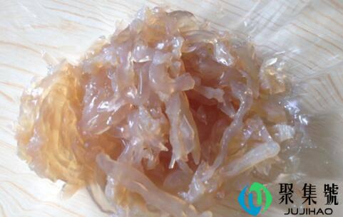 海蜇丝是海蜇皮切成丝状,切当地说是沙蛰皮切的丝,一般是渔民用新颖的沙蜇拖矾后切成丝,然后脱水加桶加盐。购置海蜇丝不是白的就好,海蜇丝一般来说鹤发黄的比力好吃,当然也要看脱水的时间。目前市场上的海蜇丝良莠不齐,好的海蜇丝次要是看长度、硬度、干度。长度是有卖相的那种,硬度是足够老盐的,干度是脱水时间长的。有了三方面包管海蜇丝好吃。