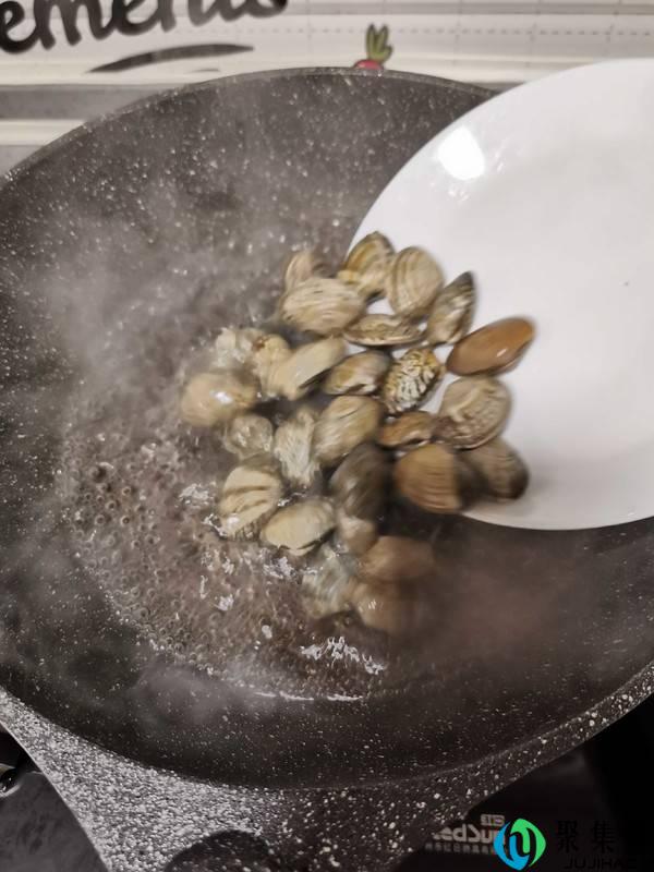2、开水里参加一勺料酒,倒入花甲煮至启齿捞出。