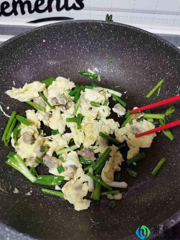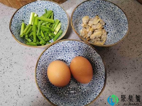 用料:花甲150克,鸡蛋两个,小葱2根,盐少许,料酒1勺。