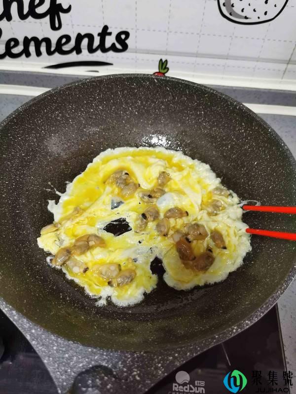 5、起锅烧油倒入花甲鸡蛋炒造略微凝固。