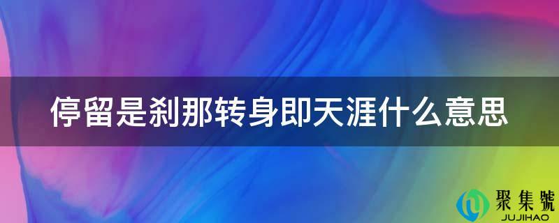 正文 停留是刹那转身即海角什么意思 百科达人 V网站编辑 /2021-09-22 09:18:46 /198 阅读 0922 那句话出自诗人白落梅做品《你若安好即是好天》,字面意思为:一转身就再也不见,相隔海角天涯。前半句“停留只为刹那”指豪情有时是短暂而又美妙的回忆。后半句“转身将是海角”,指以后的人生路,流落而又富有激情。每小我在每个阶段的设法都是纷歧样的。此刻停留,海枯石烂只是刹那之间,下一刻可能就是分手。转身不再联络,也许就会海角相隔,从此不再碰头。 声明:本文内容及图片来源于读者投稿,本网站无法甄别是否为投稿用户创作以及文章的准确性,本站尊重并保护知识产权,根据《信息网络传播权保护条例》,如果我们转载的作品侵犯了您的权利,请在一个月内通知我们,我们会及时删除。请将本侵权页面网址发送邮件到laoyang1981@qq.com,我们会及时做删除处理。